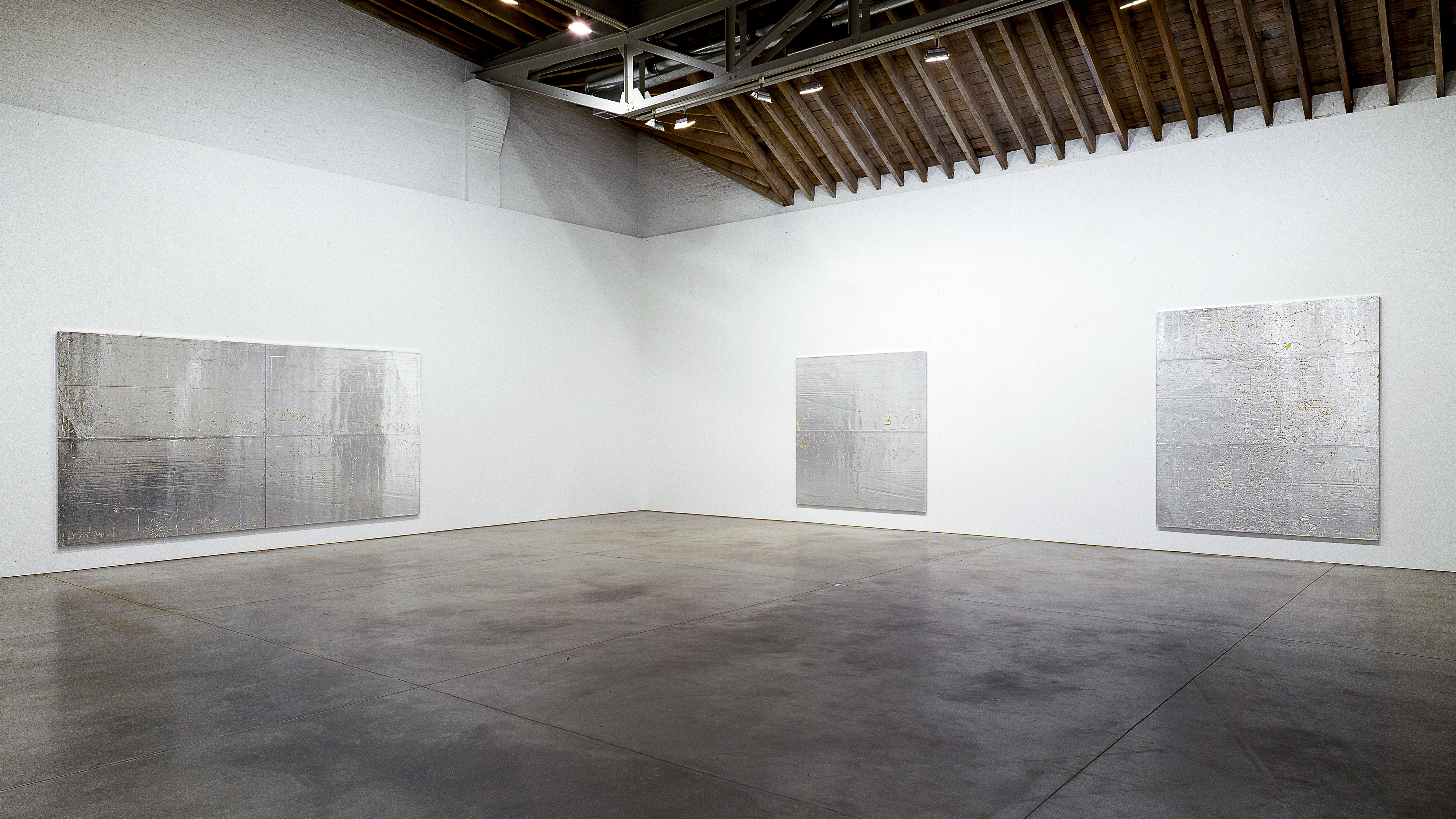 This exhibition will consist of insulation panels laminated with aluminum foil and installed to entirely cover the walls, ceiling and furniture of the gallery’s foyer and hallways. The aluminum will not only make visible the “negative spaces” of the gallery (the spaces not traditionally used for exhibiting art), but will also function as a sensitive surface on which traces and inscriptions from visitors will gradually appear. In the gallery’s main exhibition spaces, Stingel will hang paintings composed of “cut-outs” or fragments from previously exhibited aluminum foil panels showing their variously altered surfaces.